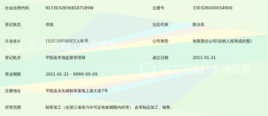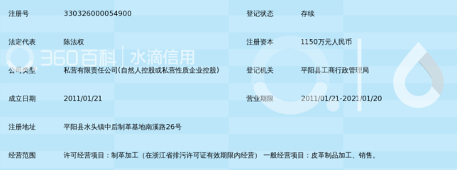| 所属类型:公司 | 地址:温州市平阳县水头镇制革园区上溪大道7号 |