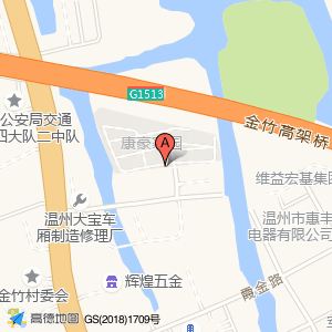 康豪家园物业处位于金竹村金竹工业区霞金路428号(温州市华晖汽摩配件厂)工厂南方向314.266米的位置。