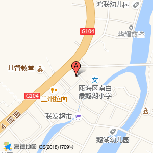 瓯海区南白象鹅湖小学占地面积约:3561㎡和温州市瓯海区花园浃路与104国道交叉口东南40米相距 ⇄ 33.622m