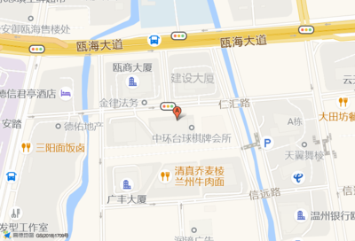 温州三汇建筑工程有限公司位于银城金座东北门南130米(舞+舞艺术培训学校)培训机构东南方向215.8米的位置。