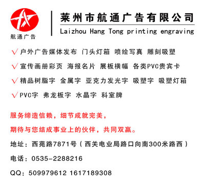 航通广告是浙江省温州市下的广告装饰,评分等级:广告设计|3.9,所属商圈:民莘西路