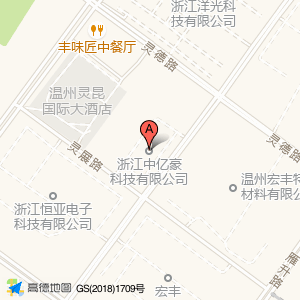 浙江中亿豪科技有限公司位于灵展路与雁升路交叉口西100米(温州宏丰电工合金股份有限公司南区)公司东南方向303.748米的位置。