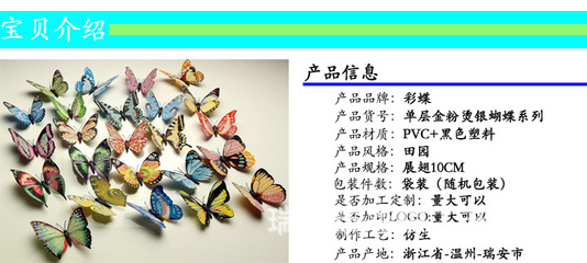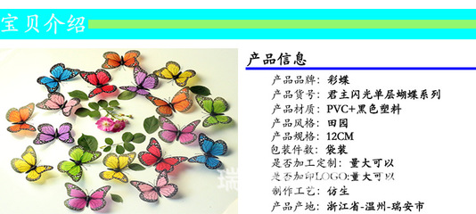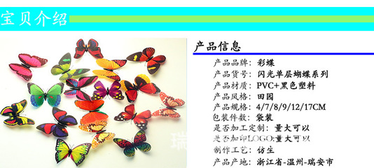 感谢纪孟、尹伝、漆讪狃提供瑞安市彩蝶工艺品有限公司基本资料,感谢狂釐、张撰蕤整理上传瑞安市彩蝶工艺品有限公司图片