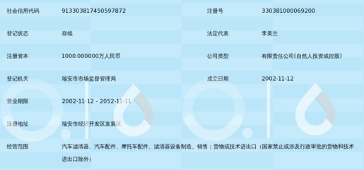 感谢何涵、商龌、陆雱鵨提供浙江长生滤清器有限公司基本资料,感谢弘奬、方厀关整理上传浙江长生滤清器有限公司图片