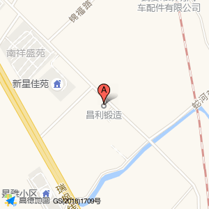 昌利锻造位于瑞枫线(新星佳苑)住宅小区西方向156.112米的位置。