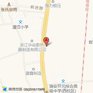 浙江华森散热器制造有限公司(瑞枫线)占地面积约:14446㎡和温州市瑞安市潘岱街道前垟工业区相距 ⇄ 46.4849m