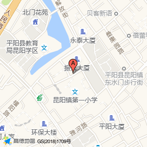 昆阳镇第一小学占地面积约:7617㎡和温州市平阳县汇水河路298号相距 ⇄ 4.29458m