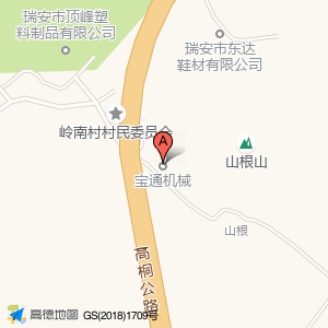 宝通机械位于桐浦镇岭南山根村(温州瑞安市顺旭眼镜配件厂)工厂东南方向535.383米的位置。