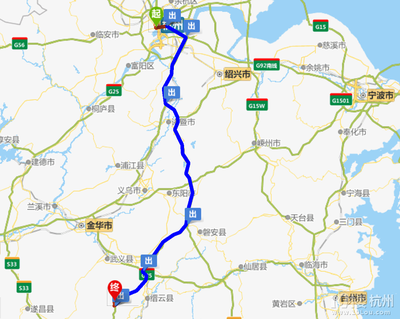 沿下嶂岙隧道途径S26诸永高速向东北行驶3.3千米向右前方行驶进入匝道