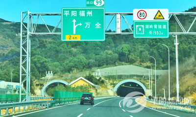 沿温州南枢纽途径G15沈海高速、四脚亭大桥、罗凤高架桥向南行驶13.0千米直行进入隧道