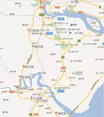 沿瓯越大道向南行驶3.0千米向右前方行驶进入匝道