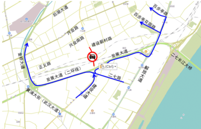 沿文昌路途径文昌南路向南行驶1.5千米左转