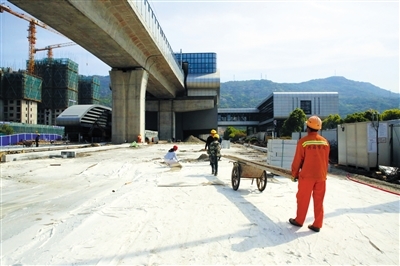 沿车站大道向东北行驶22米右转