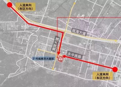 南洋大道与永中西路交叉口位于S1线(瑶溪(地铁站))地铁站南方向170.745米的位置。