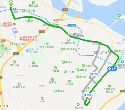 ➤沿瓯海大道辅路向东步行3949米到达目的地