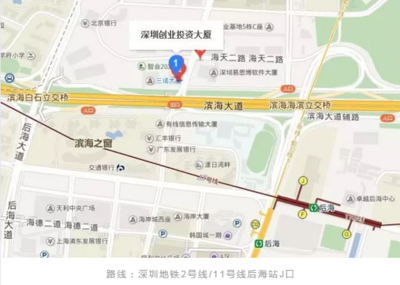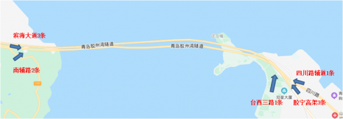沿滨海大道向南行驶811米靠左进入匝道