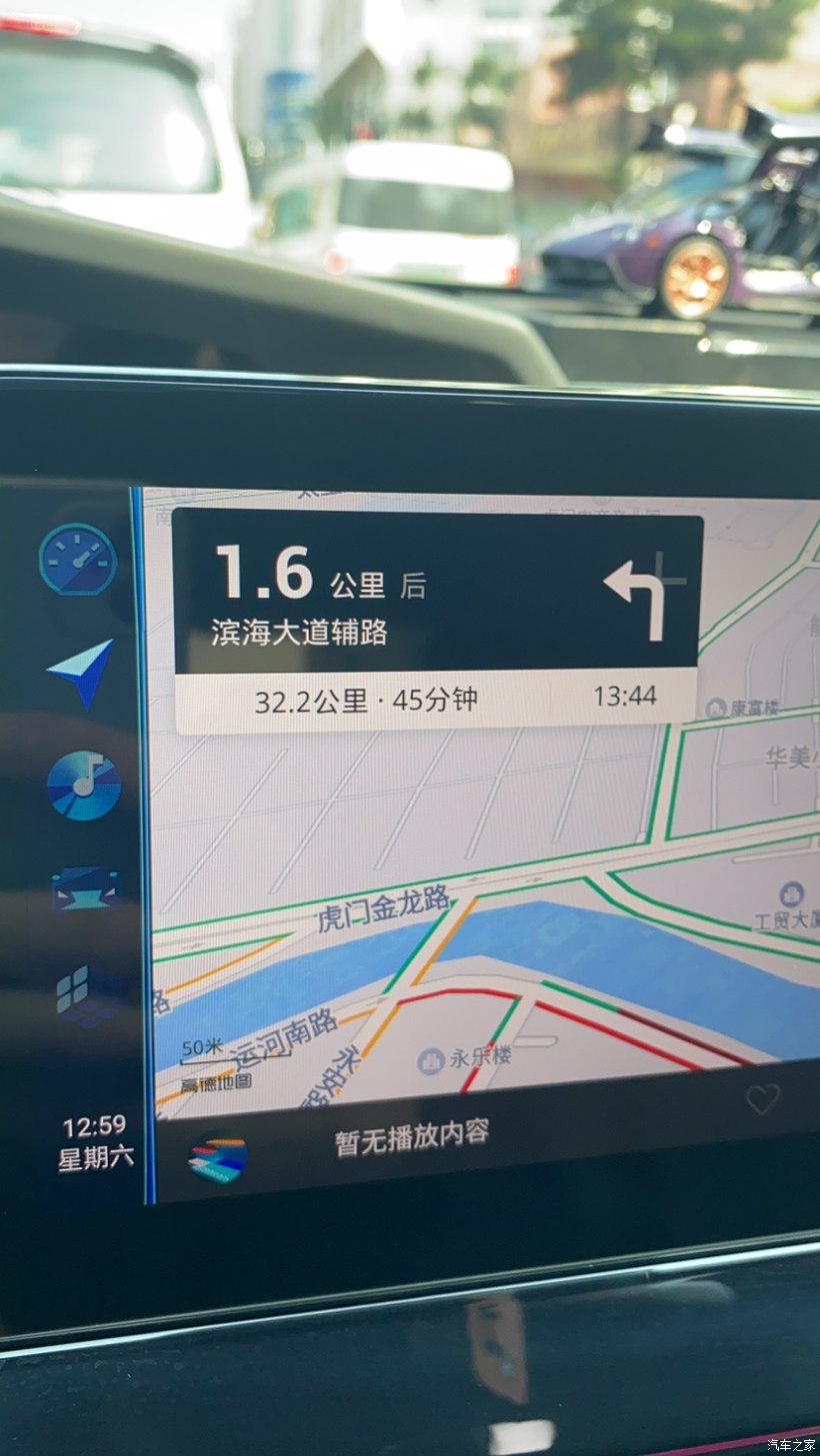 沿滨海十三路向东南行驶2.6千米向右前方行驶进入右转专用道