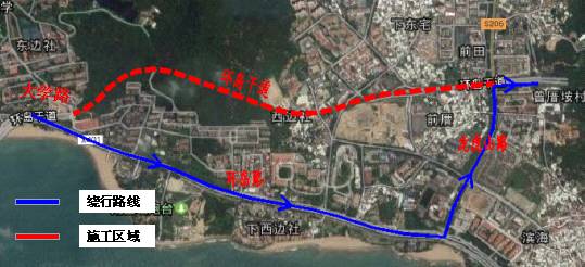➤沿金海大道向西南步行1556米左转
