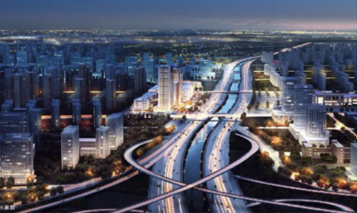 ➤沿富强路向南步行1124米向右前方行走
