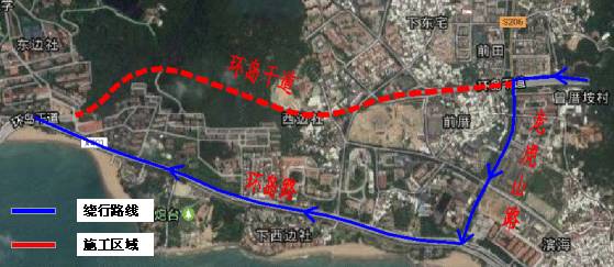 沿环山北路向东行驶1.3千米直行进入隧道