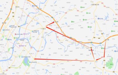 ➤向东步行1789米向左前方行走