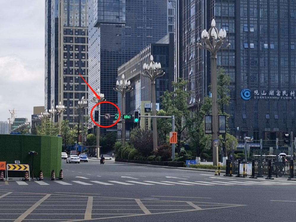 ⓞ沿富强路向南骑行39米直行