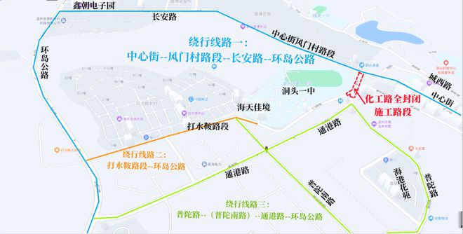 环岛公路与长安路交叉口位于环岛公路与长顺路交叉口东北80米(鑫朝小微创新创业园)产业园区西北方向109.188米的位置。
