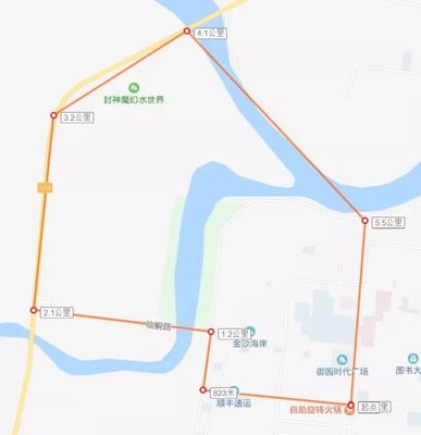ⓞ沿灵霓北堤向东南骑行22171米直行
