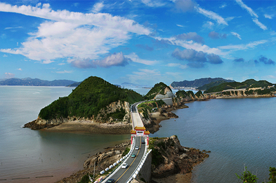 沿内深门隧道途径77省道、洞头峡跨海大桥向东南行驶3.6千米进入环岛