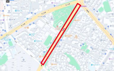 ➤沿南都路向东步行13米向右前方行走