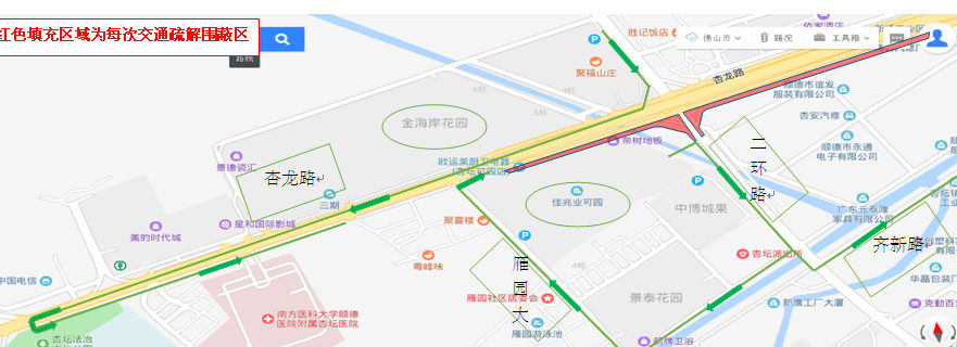 ➤沿瑞祥大道向东北步行3313米向右前方行走