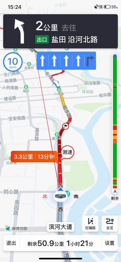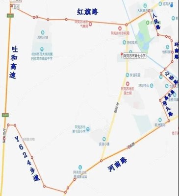 ⓞ沿富强路向南骑行1124米向右前方行驶