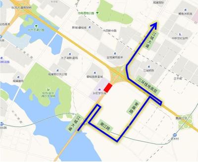 朝江路与江城路交叉口位于江城路与沙直线交叉口东北100米(塘头村会议中心)会展中心西南方向227.876米的位置。