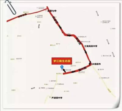 ➤沿江南大道向北步行690米向右前方行走