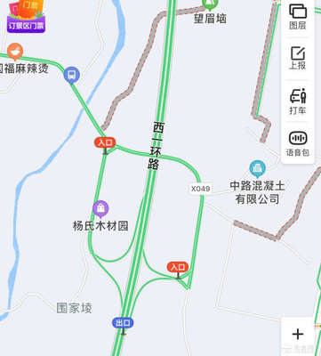 沿白岩寨隧道途径57省道复线向西北行驶2.7千米左转进入匝道