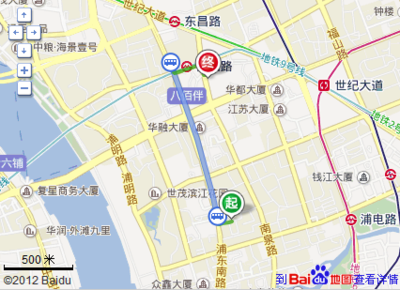 ➤沿世纪大道向东步行2069米直行