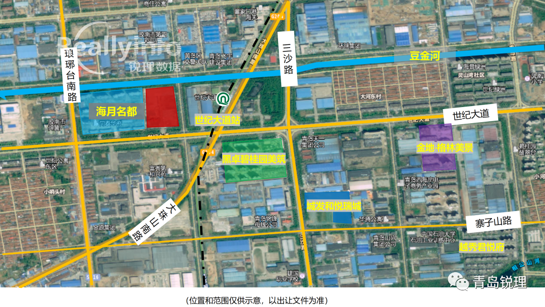世纪大道与海景路交叉口位于启源路与产业大道交叉口东南80米(世纪多佳购物中心)购物中心西北方向798.289米的位置。