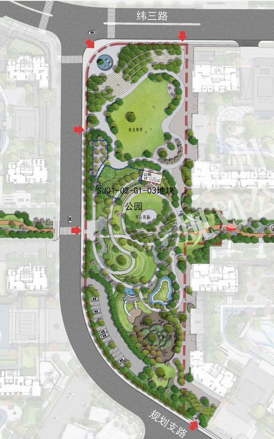 ➤沿纬三支路向西南步行128米到达目的地