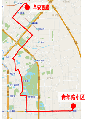 ⓞ沿跃进中路向西骑行385米右转