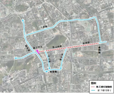 ➤沿京福线向北步行1209米向右前方行走