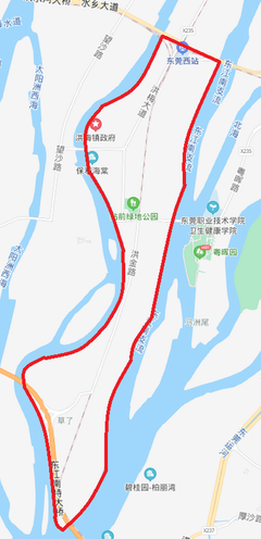 ⓞ沿塘下大道向南骑行2351米左转