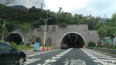 沿104国道向西南行驶1.7千米直行进入隧道