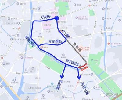 ➤沿广场路向南步行1358米向右前方行走
