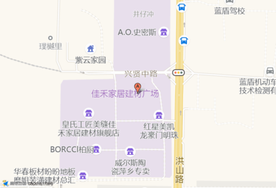 兴贤中路位于康乐路75-79号(康乐家私商城)家具城西南方向234.726米的位置。