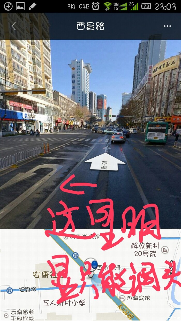 ➤向西南步行3367米向右前方行走