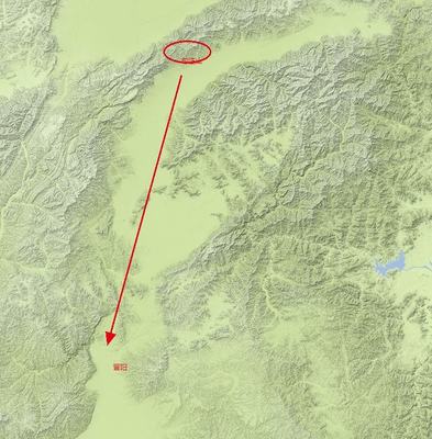 ➤沿钱马线向西北步行5117米向左前方行走