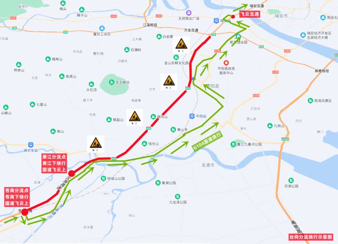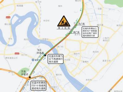 沿瓯越大道向南行驶3.0千米向右前方行驶进入匝道