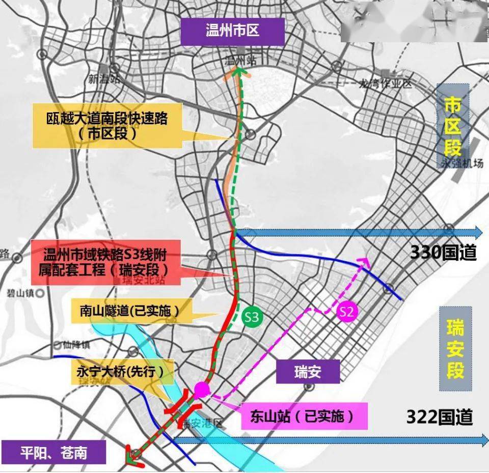 沿温州南枢纽途径G15沈海高速、四脚亭大桥、罗凤高架桥向南行驶13.0千米直行进入隧道