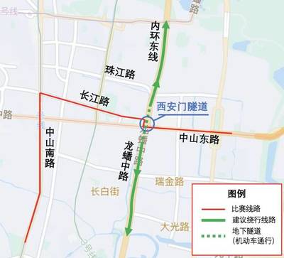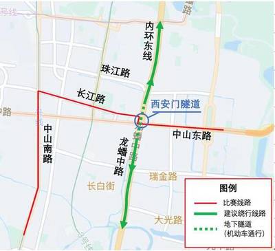 沿高峰尖特长隧道途径G4012溧宁高速、徐砻大桥向西行驶4.7千米直行进入隧道