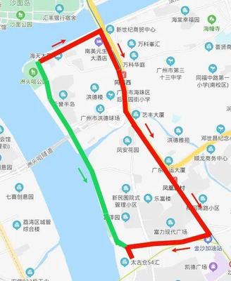 ⓞ沿广安西路向西南骑行1117米右转